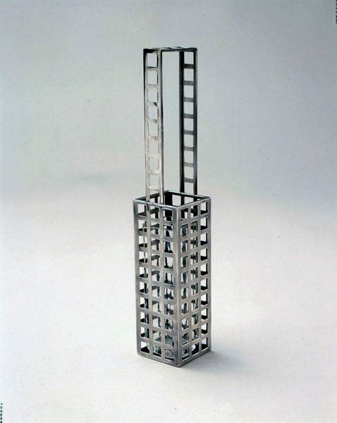 Josef Hoffmann was the most important designer behind the foundation of the Wiener Werkstatte where this piece was made. His designs for metalwork earned him the nickname 'quadratl' Hoffmann and a place as a pioneer of geometrical Modernist design. This piece is one of the most uncompromising of Hoffmann's proto-modernist grid designs.
