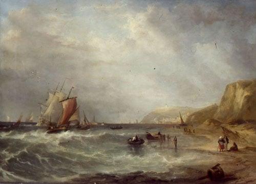 Folkstone from the East. The Fishing quarter of the town, with sailing vessels in the bay. Currently unlocated in the collection according to an Art Fund audit.