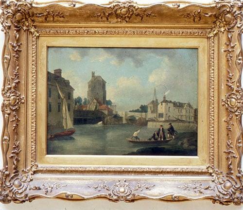 Folly Bridge was demolished in 1770 which suggests that the painting may date from the mid-18th century, although it remained a convention to include the bridge in depictions of the view throughout the century.
