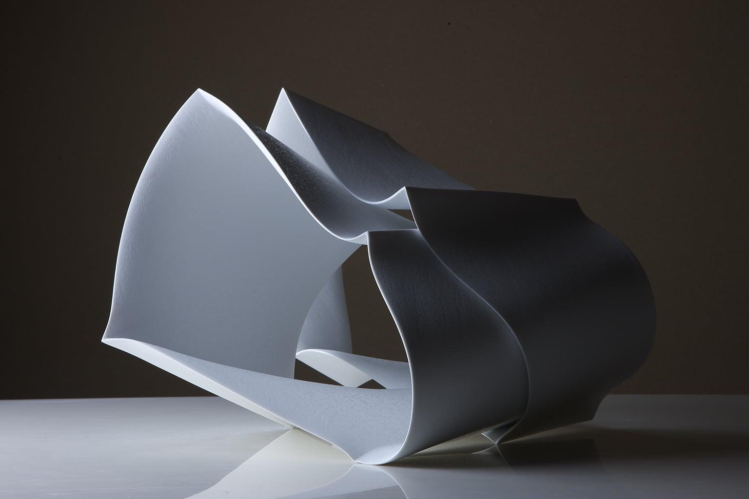For his Forms in Succession series Shigekazu Nagae slip-casts individual shapes through bisque-firing, which are combined by glazing the joints and suspending the work in mid-air within the kiln to create the finished piece.
