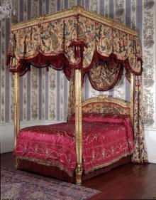 Four poster bed with chintz hangings. The Tilliard family were cabinetmakers in Paris from the end of the sixteenth century. Jean-Baptiste the younger maintained his workshop until the Revolution and received important commissions from the French and Swedish royal families. It was not known for whom the bed was originally made, nor when it first came to England. The bed is first recorded at Temple Newsam in the 1871 inventory.