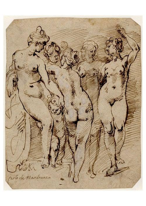 Four standing female nudes and a child, c. 1585