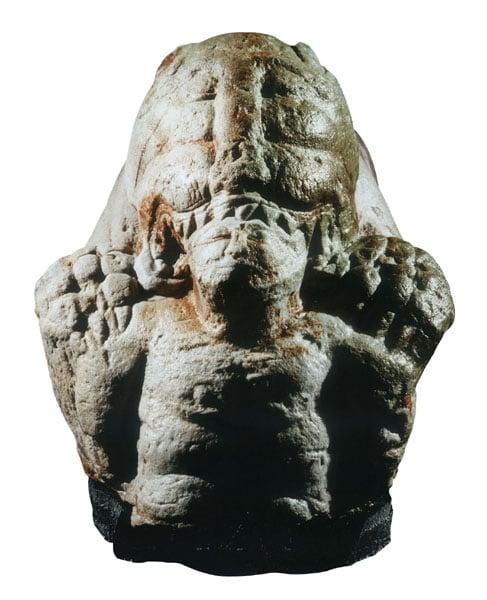 Depicts a lioness poised to devour a nude bearded male figure, with his head in her mouth and her paws holding his shoulders. On plinth, emerging from under the lioness' belly, are two snakes. A tomb monument - roman funerary symbolism.