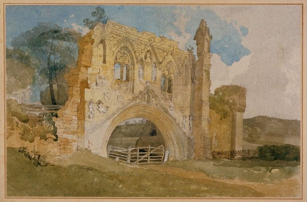 This delicate watercolour depicts the fourteenth century gateway to Kirkham Priory, Yorkshire. Cotman spent three summers in Yorkshire between 1803 and 1805 where he stayed with the Cholmeley family in Bradsby. From there he went on regular sketching expeditions to York, Rievaulx Abbey, Duncombe Park and Kirkham Priory. This work combines the most sensitive pencil drawing, which carefully delineates the weathered and crumbling façade of the abbey, with bold passages of wash that distil the motif into a pattern of abstract shapes and colors. The painting is one of the two works by Cotman in Ernest Edward Cook's collection. Cook bequeathed the entire contents of his house to the Art Fund; the bequest comprised of over 150 paintings, tapestries, furniture, silver and porcelain and was distributed to nearly 100 UK galleries.