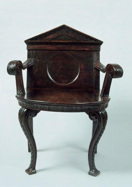 A George II mahogany hall chair designed by Richard Boyle, 3rd Earl of Burlington and William Kent for Chiswick House.