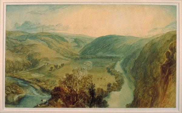 This work was a study for an illustration to The History of the County of Durham by Robert Surtees. The magnificent woodland scenery of Gibside sweeps from the heights of the hills to the brink of the Derwent, intersected by deep, irregular ravines. The landscape is sketched in a broad, free style while, across the Derwent, a cultivated country forms a fine, bright contrast to the wooded masses which darken the southern bank.