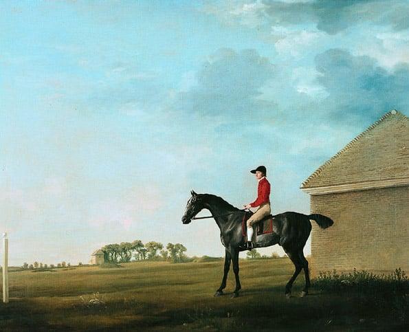 Portrait of one of the most famous racehorses of 18th-century England. Gimcrack was a grey horse foaled in 1760 by Cripple, the Godolphin Arabian's son, out of a Partner mare.