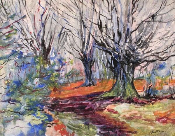 This painting is a vibrant winter view of Epping forest and shows the artist's rich use of colour. The landscapes of the Epping Forest district have acted as a major source of inspiration to a number of important artists in the 19th and 20th centuries. The museum has developed an important collection of works by many of these artists and this landscape is the first work by Epstein to enter the collection.