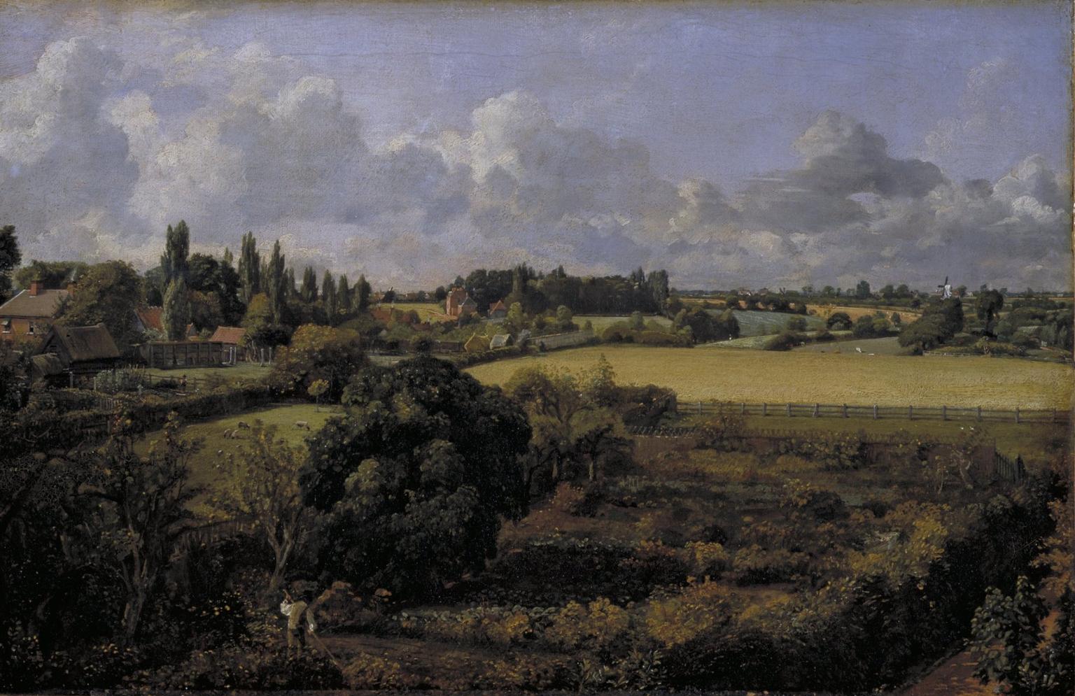This sparkling landscape depicts the view from Constable's parental house in Suffolk; it was painted from an upper window or the roof.
