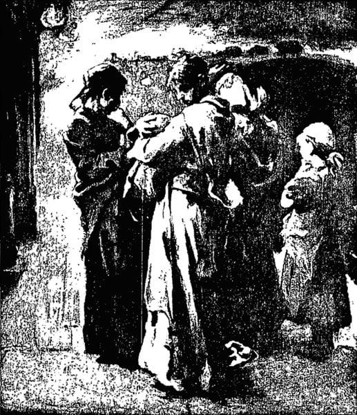 The smallest of two versions painted in oils of his drawings for 'The Graphic' entitled 'Gone - Euston Station - Departure of Emigrants 9.15 train for Liverpool September 1875'. This was a theme common in Victorian painting with the emigration of able-bodied men to seek employment in America and the families they left behind.
