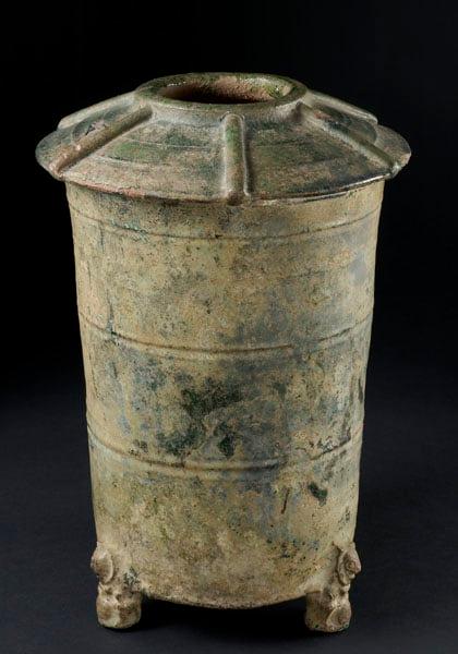 This low-fired ceramic model of an everyday object is a typical feature of Han dynasty burials, which also included cooking utensils, household articles and domestic and farm animals in addition to examples of architecture. They were placed in tombs for the benefit of the part of the deceasedÂ’s soul that resided there. The lead glazes applied to burial wares were coloured with either iron for yellow/brown or copper for green, and were not used on functional pieces. Extract of an article in the 2007 Art Fund Review written by Shelagh Vainker.