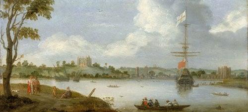 Greenwich Palace from the North-East, with a Man-o'-War, 1630