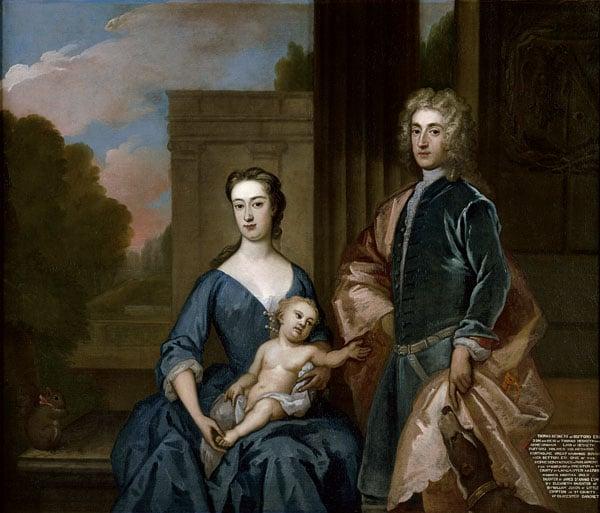 Group Portrait of Thomas Hesketh with his wife Martha and a Son in Grounds of Rufford, Lancashire, 1723