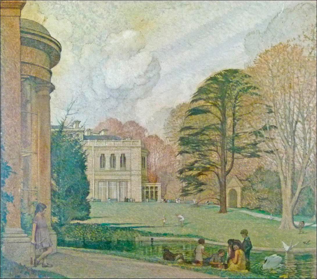 Maxwell Ashby Armfield painted this romantic view of Gunnersbury Park soon after the house and grounds became a public park and museum in the late 1920s. Armfield, who trained in Birmingham and Paris, is well known as a member of the Arts and Crafts Movement. This record of the landscape and buildingÂ’s history will now be displayed at Gunnersbury Park Museum when it reopens after renovation in 2017.