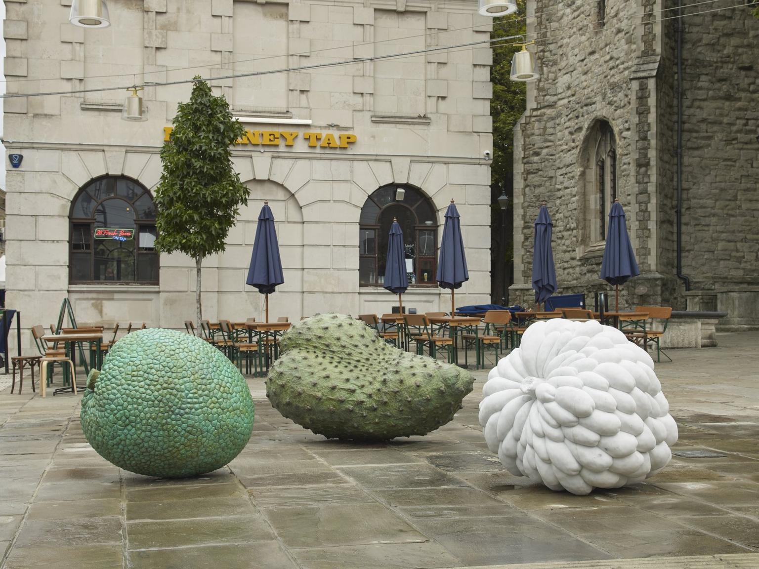 Veronica Ryan, who holds an MA from the Slade School of Fine Art, is a Montserrat-born British sculptor who moved to London as a child. Her Hackney Windrush commission Custard Apple (Annonaceae), Breadfruit (Moraceae), and Soursop (Annonaceae) comprises three sculptures representing Caribbean fruit and vegetables. The custard apple is sculpted in Cararra marble, while the soursop and breadfruit are cast in bronze with a green patina. In 2022, Ryan won the prestigious Turner Prize, having been nominated in part for this work.