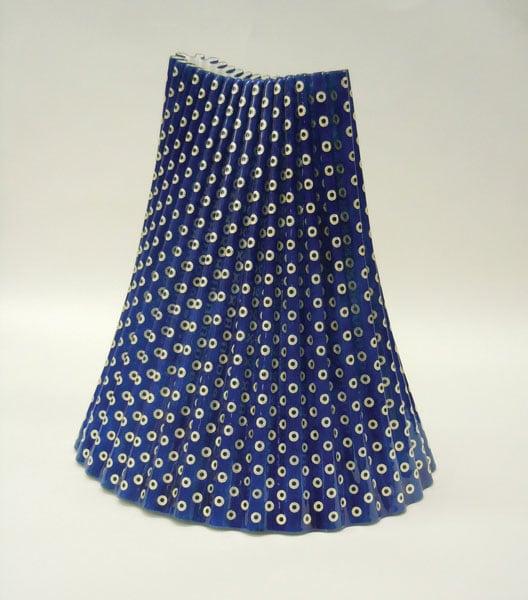 Plymouth was one of eight museums to win a share of £75,000 to buy their selected object thanks to Art Fund Collect, an initiative in collaboration with the Crafts Council aimed at championing contemporary craft and increasing its presence in UK collections. This crinkling vessel-shaped form by the Japanese artist Takeyama has an asymmetric shape, cobalt blue colour and finishing touch of hand-painted flecks of silver leaf. The Art Fund presented another work by Takeyama to Birmingham at Art Fund Collect 2011.