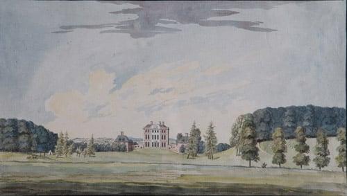 Hardwick Hall, near Ellesmere, was built by John Kynaston who had inherited the land in 1693 and finished the house before his death in 1733. The drawing shows Hardwick before the gardens were altered in the 19th century.