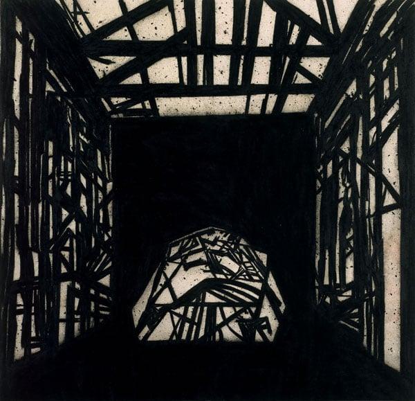 The picture is intentionally ambiguous. Neither the scale of the head nor its connection to a body are defined. It stands out sculpturally against the unpenetrated rear wall and the location of the eyes, nose and mouth seem uncertain.