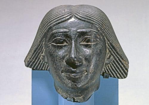 Sculptures of this kind were characterised by their archaistic appearance, the dress, pose and accoutrements being those of Old Kingdom works. In the case of this head, the wig is identical to those on statues of the 5th and 6th Dynasties. The facial features, however, are more naturalistic and probably more of a true likeness of its owner.