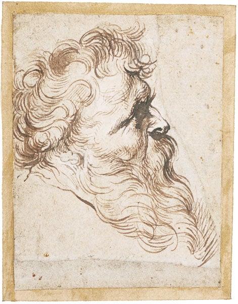 Apparently torn from a larger sheet of several head studies. Rubens built up a stock of such heads or 'types' throughout his career which were used as workshop tools, stimulating the composition process. This example corresponds with the head of Abraham in 'The Meeting of Abraham and Melchizedek', circa 1625. Complements another sketch on panel also in the museum's collection which was used for a similar purpose.