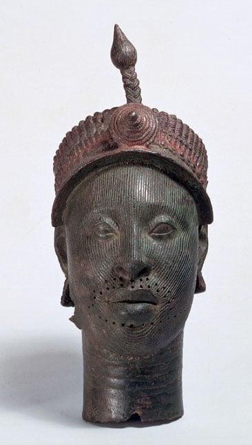 One of the supreme achievements of West African Art, this head of an unidentified ruler of Ife, religious centre of the Yoruba in Southern Nigeria, wears a crown painted red to represent carnelian beads.