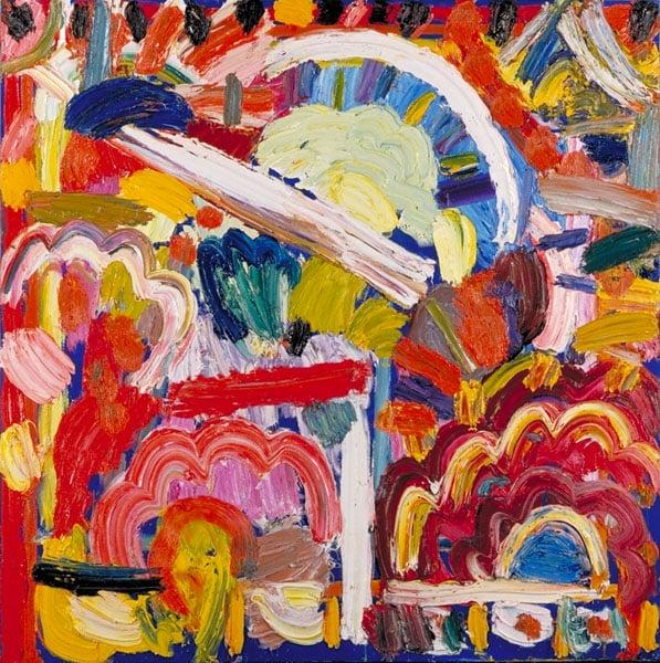 'Helios' reveals Ayres renewed interest in alluding to the real world, with highly pitched geometric and organic forms and tight sweeping curves which can be read as horizon, hilltop or rainbow, equivalents of landscape.