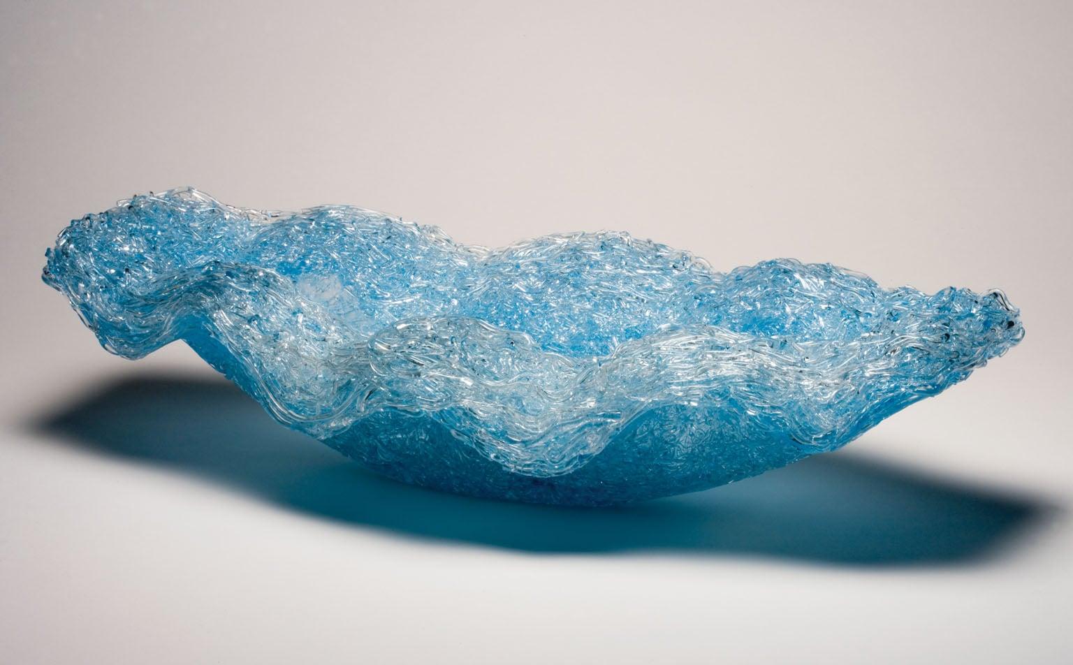 The bowl is composed of pale turquoise-blue fused glass strings. It was donated by Nicholas and Judith Goodison to the Fitzwilliam and forms part of their third gift in a continuing series of gifts through the Art Fund to the Fitzwilliam Museum. Sir Nicholas and Lady Goodison are committed supporters of contemporary craft and have collected many items of contemporary and applied art.