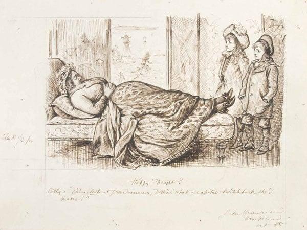 Five drawings for 'Punch' magazine. Part of a collection of 300 drawings and illustrations bequeathed to 57 museums by the estate of George du Maurier through the Art Fund in 1934.
