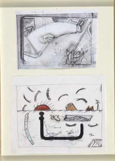 Lewty's surreal and disturbing images draw on a wide range of deeply subjective experiences. Before falling asleep each night, and immediately on waking, he records dream images and snatches of text as well as scribbled notes and explanatory maps and diagrams. These notes form the basic vocabulary of the finished work. Images culled from his dream notations are transferred to scraps of tissue paper and then worked up with ink, crayon, and black acrylic. The final image is a combination of the carefully distilled and refined with the accidental. Dream images form a significant part of the Museum's contemporary fine art collection.