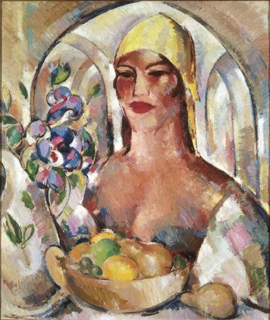 This is a portrait of Fergusson's wife Margaret Morris who the artist met in Paris in 1913. Margaret was an important dancer and artist and the two worked on many dance projects together. They moved to Glasgow in 1939. Part of the Robinson bequest of 75 works which were distributed among 16 museums in Scotland through the Art Fund in 1989.