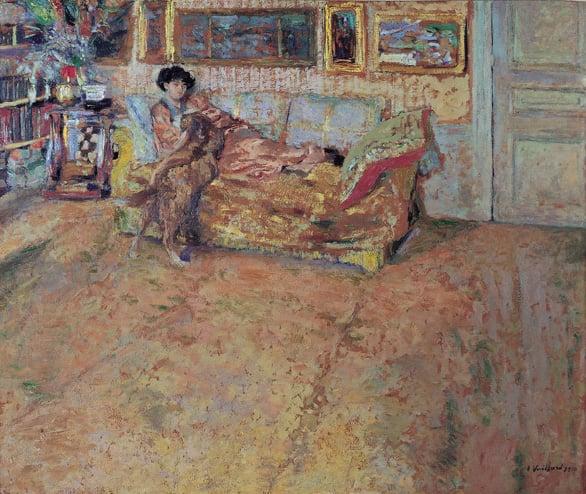 Interior; Lady on Sofa with Dog, 1910