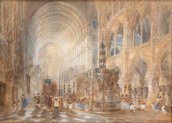 This work is typical of the artist's oeuvre, as he almost exclusively painted interiors of British and European churches and cathedrals. The artist was born in Shropshire and was President of the Royal Society of British Artists from 1887 until his death.