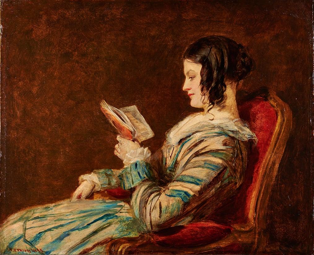 William Powell Frith painted this tender portrait of his wife Isabelle in 1845, the year of their marriage. It may have been painted in Derbyshire, while Frith, 26, and Isabelle, 23, were on their honeymoon. Frith later became famous for his impressive crowd scenes, such as The Derby Day and The Railway Station. The intimate portrait of Isabelle remained in the family until the 1930s. Frith was born in the Yorkshire district of Harrogate, and the painting now joins other works by the artist in the townÂ’s Mercer Art Gallery.