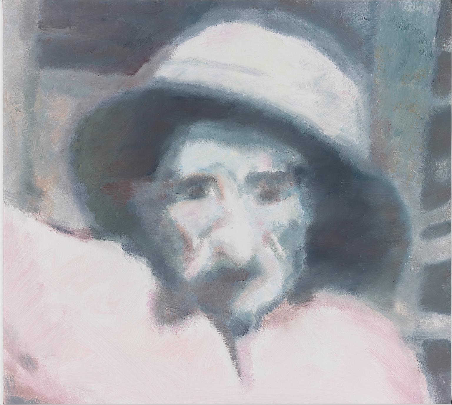 Tuymans’s portrait of Sagawa is not a conventional likeness, but a painting that resembles a blurred, bleached out photograph. It is based on a childhood photo of Sagawa that appeared in a documentary film and was captured by the artist on his phone. The killer is shown wearing a grotesque mask and an explorer’s hat.