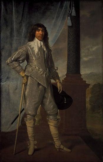 Depicts James, 1st Duke of Hamilton, and 3rd Marquess at the age of 23 when he moved to London. Full-length, dressed in a silver-grey suit. A courtier, an inept diplomat and soldier, his support for Charles I led to his execution in 1649. Signed and dated: D Mijtens.