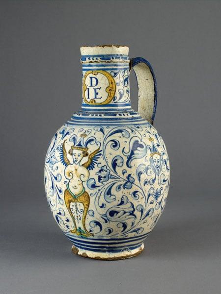 This jug is an extremely rare and uniquely handsome example of grotesque painting in the Antwerp Mannerist style on English delftware. The delftware industry had been set up in Norwich and London by Protestant emigre potters from Antwerp and the earliest products, like this jug, were close in style to Antwerp. The Ashmolean has pre-eminent Italian maiolica from the Fortnum Collection and superb later English delftware from the R.H. Warren Collection. This work will demonstrate the Antwerp/Italian origins of the technique. This jug will form a prominent key element in the 'History of Tin Glaze' section of the European Ceramics gallery in the new Ashmolean building, due to open in November 2009.