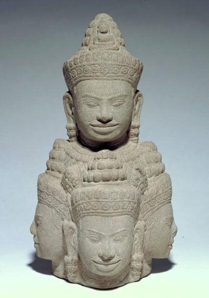 Upper half of an image of the Bodhisattva Avalokitesvara or Lokesvara. 5 headed. Features characteristic of mature Khmer art. Origins: ? provincial, eastern Siam.