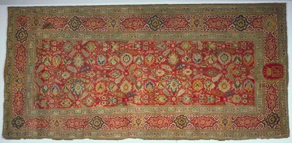 English 'turkeywork', at one end a red cartouche with an earl's coronet and a monogram incorporating the initials MECILK. 518 AE