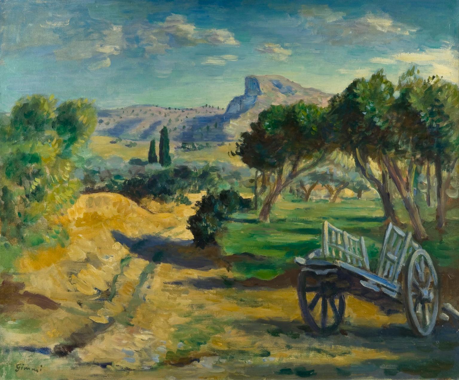 A landscape with a farm cart in the foreground. Part of a collection of 27 works bequeathed to the Art Fund by Mrs Fulford and distributed to 17 different public collections.