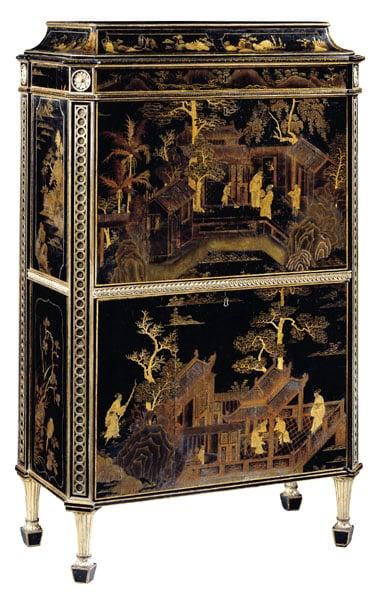 Fall-front lacquered and japanned secretaire. This work was acquired with assistance from the Wolfson Foundation.