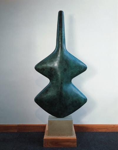 Large Siren is a major work from a group of bronzes executed in the 1980s. It encompasses central themes in Turnbull's oeuvre, in particular his interest in the formal and evocative content of primitive art. Whereas the figures Turnbull made in the 1950s emphasised primitive strength and an almost crude surface texture, his more recent pieces have a smooth elegance and crisp outline whilst continuing the exploration of the theme of the goddess and the forms of archaic sculpture. Large Siren forms an important addition to the Hunterian's collection of contemporary work, which includes works by Paolozzi and Caro. This acquisition has a particular significance as the work of an internationally recognised Scottish artist.