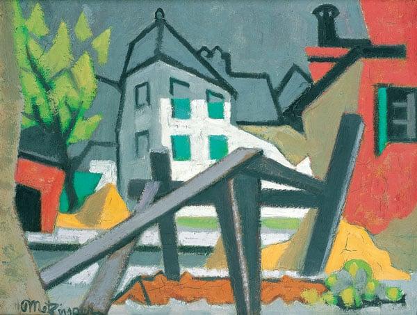 The title is translated as The Scaffolding. This is one of a collection of 66 works bequeathed to Pallant House by Charles Kearley. Kearley was a builder and property developer. Kearley built a small block of flats in Kensington in the later 1930s which Maxwell Fry had designed, and the architect persuaded him to add a penthouse for himself at the top. Kearley found the flat very bare so started to furnish it with works by Paul Nash, John Piper and others. His enthusiasm for contemporary art and design grew from then on.