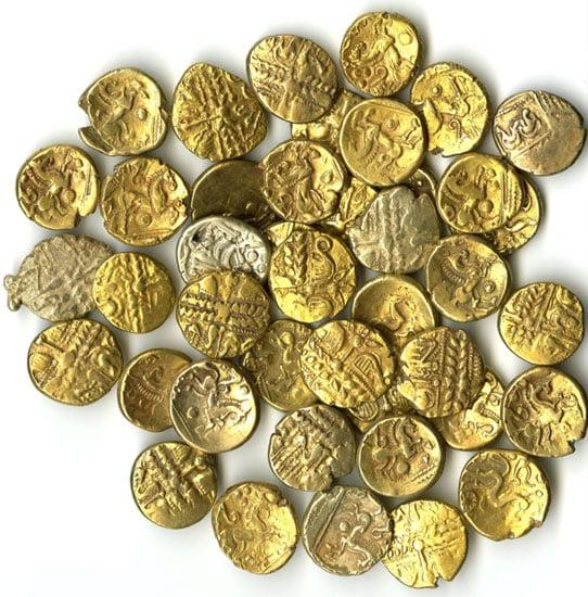 This hoard of 73 staters was found on the same site as the Whaddon Chase hoard, the largest ever found in Buckinghamshire discovered in 1849. The new hoard is likely to be a previously undiscovered part of that original hoard. The Whaddon Chase hoard (and consequently, the Little Horwood hoard) is particularly important, numismatically, because even 150 years after the original discovery, it is still the main source of Whaddon Chase type coins (named after the original find). These were probably minted to pay the tribute demanded by Julius Caesar following his second invasion of Britain in 54 BC.