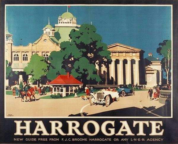This view of Harrogate includes some of the town's finest buildings - the spa and the Royal Hall. The building shown on the right (Cheltenham spa) was demolished in the early 1950s. The town was at the peak of its popularity as Britain's health resort in the 1920s.