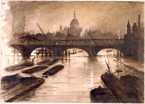 The temporary Waterloo Bridge. Part of a bequest for 145 works presented by Mr A D Power through the Art Fund to the Museum of London in 1959.
