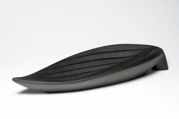 This work is made from cast opaque black glass and demonstrates the versatility of glass.