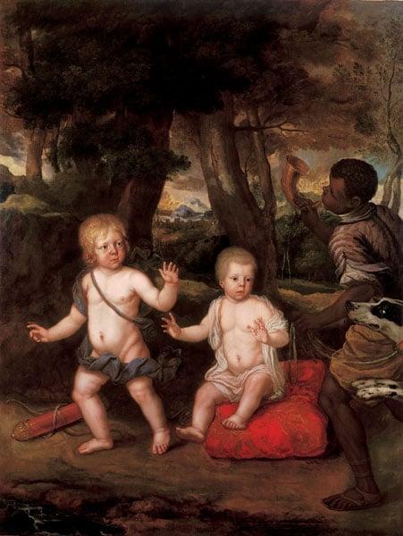Full length portraits of Lucius and Montague Hare, the young sons of Henry Hare, the 2nd Lord Coleraine, owner of Bruce Castle in the 1680s. The children are depicted with an African attendant and hound in an Italianate landscape. The painting is one of only two objects that survive from the early history of the house.
