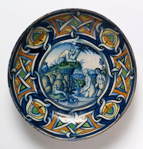 This dish, one of the key pieces for the study of the pictorial style in maiolica, is of exceptional beauty and rarity. The evolution of this pictorial style is well-understood from the 1520s onwards. It is less clear where the style originated and this dish, with its remarkably early date, stands at the very beginning of its development.
