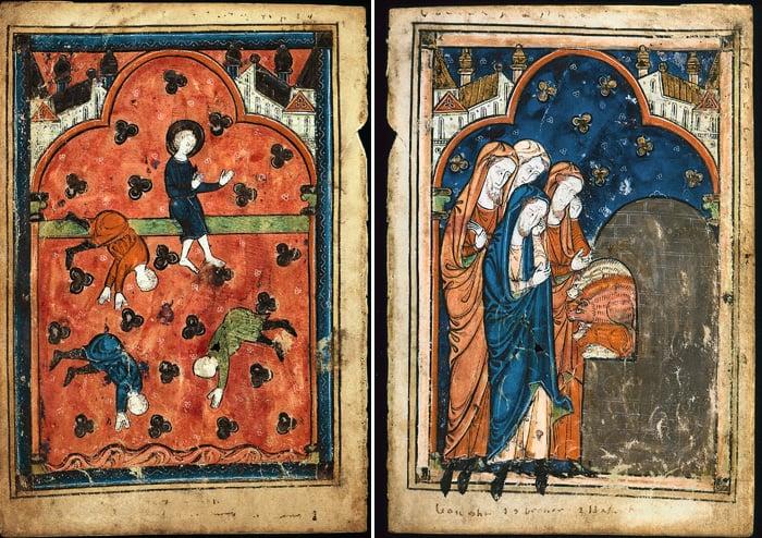 Manuscript leaf with two illuminated miniatures, 1250–1275