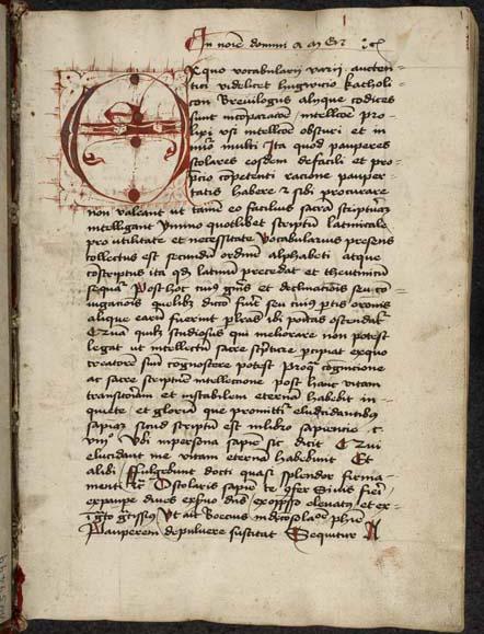 Latin-Middle High German dictionary. Finished on Feb 23rd, 1448, probably in Austria. In contemporary binding. A paper label laid down on the spine bears the inscription 'Henr Zach Proca/ Vocabular / Latino-germ/ 1448' in a 19th-century hand. This work was donated by Campbell Dodgson, who presented 10 works on paper to the British Museum through the Art Fund between 1907 and 1928 and bequeathed a large collection of etchings by William Strang in 1952.